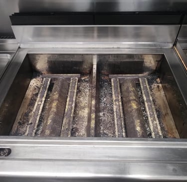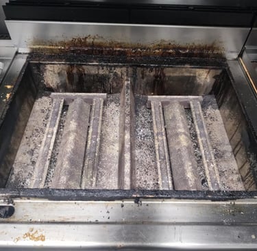 Ovens, stoves, cooktops, fryers, grills – removal of grease, burnt residues, and accumulated food debris.