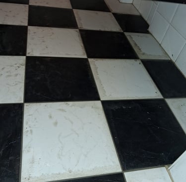vet en industrieel vuil dat vanuit het magazijn/de fabrieksvloer wordt meegebracht