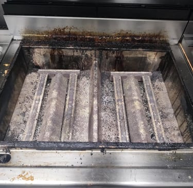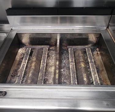 Ovens, fornuizen, kookplaten, frituurpannen, grills – verwijdering van vet, verbrande resten en opgehoopte voedselresten.